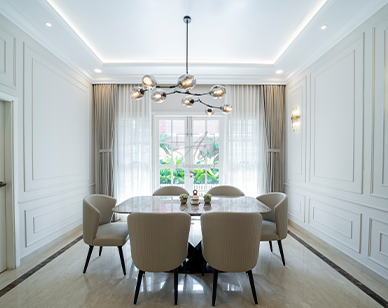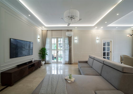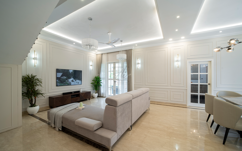 The clients envisioned a home that felt like a European retreat—marked by refined wall paneling, statement lighting, soft tones, and seamless layouts for modern living. Their goal was a residence that offered both grace and comfort, with spaces that flow effortlessly while retaining a sense of warmth and sophistication.