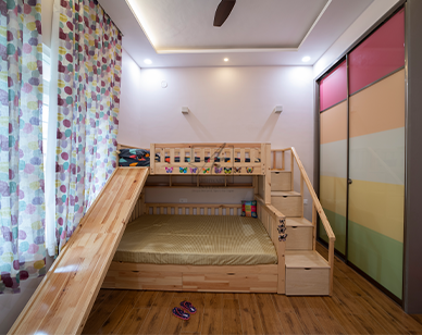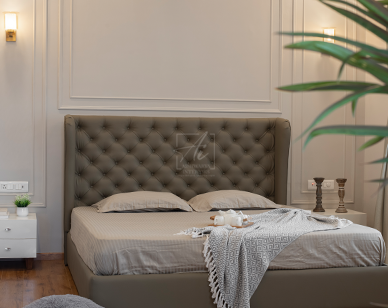 Aishwarya Interiors delivered a villa that embodies understated European luxury with a modern touch. From the chandelier-lit foyer to the marble-floored living room, every space reflects elegance and character. The sunlit dining area, serene bedrooms with tufted headboards, and warm wooden flooring combine classical charm with homely comfort. Subtle brass accents, greenery, and textured finishes complete the design, showcasing how luxury villa interiors in Bangalore can balance timeless beauty with everyday functionality.