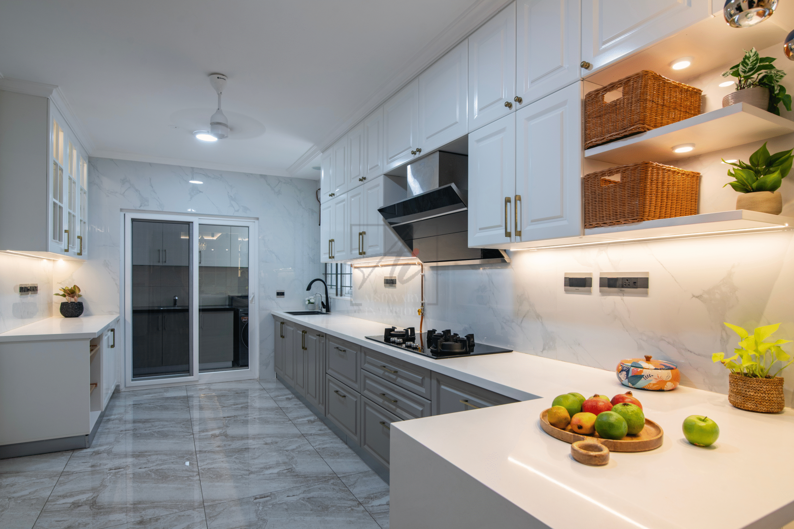 Aishwarya Interiors delivered a villa that embodies both stately elegance and modern sensibility. Intricately crafted wall paneling, arched architectural details, and refined textures bring a European charm, while functional layouts, light-filled spaces, and playful contemporary accents keep the home practical and fresh.