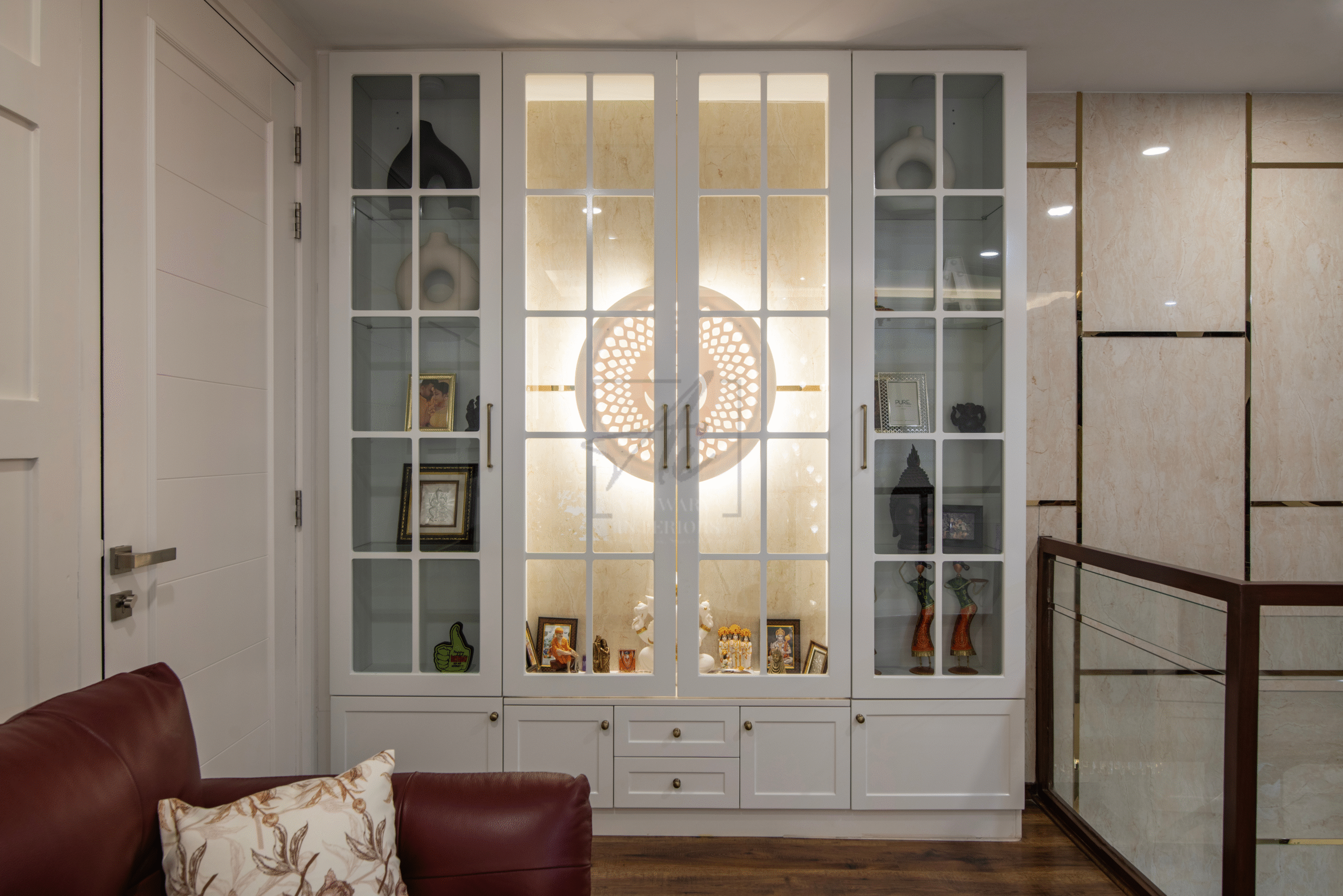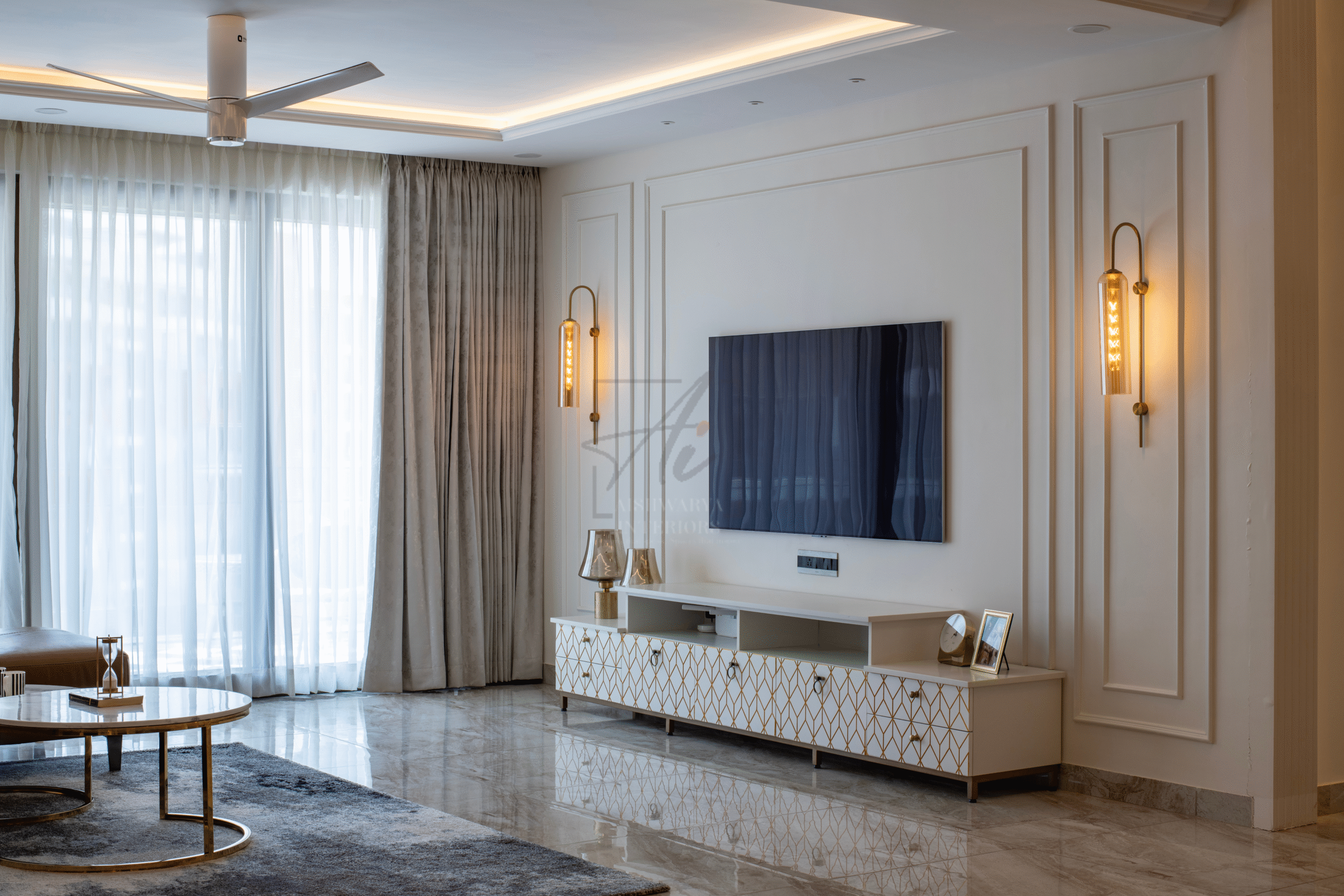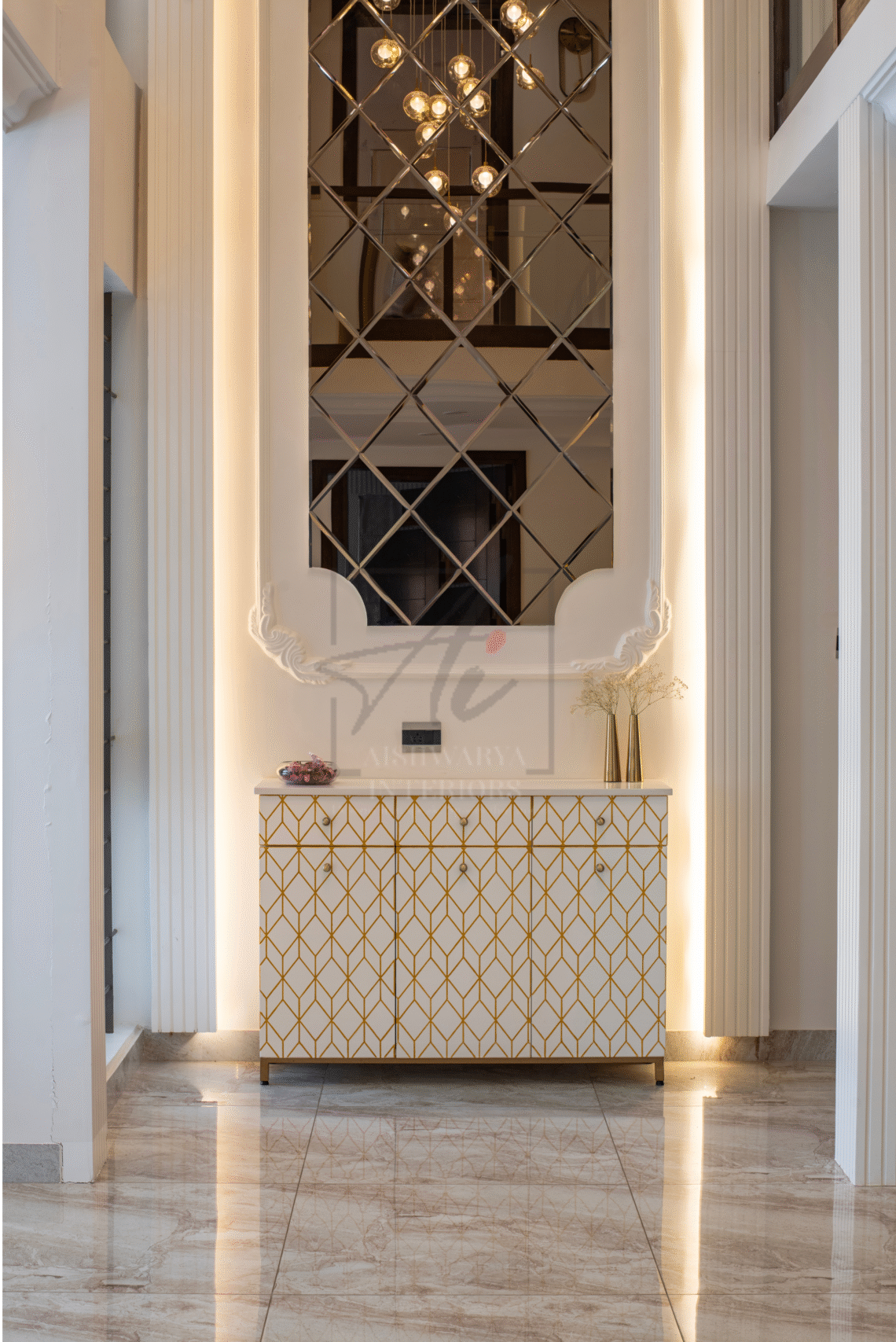 “Meadow in the Sun” is a 4-BHK villa in Bangalore designed by Aishwarya Interiors Design Studio for Lisa and Kaushik. The interiors beautifully fuse European elegance with contemporary flair, creating a home that is both inviting and luxurious. Rich wall detailing, bespoke furniture, and statement lighting bring grandeur, while warm textures and clean lines add everyday comfort.